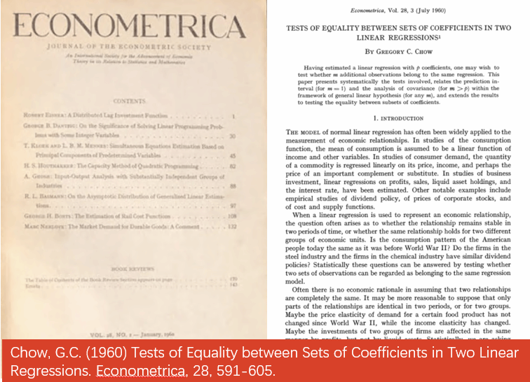 其在经济学的多个领域都有所建树,共出版专著11部,发表论文160多篇。在计量经济学方面尤为显著。20世纪60年代,他在理论方面创建的经济计量学的“邹氏检验”(The Chow's Test),以及提出的动态经济学谱分析方法和最优控制方法,蜚声国际。其中“邹氏检验”已经成为计量经济学中的重要工具。而普林斯顿大学的计量经济学研究计划更是以邹至庄命名,这些奠定了他在计量经济学领域的泰斗地位。