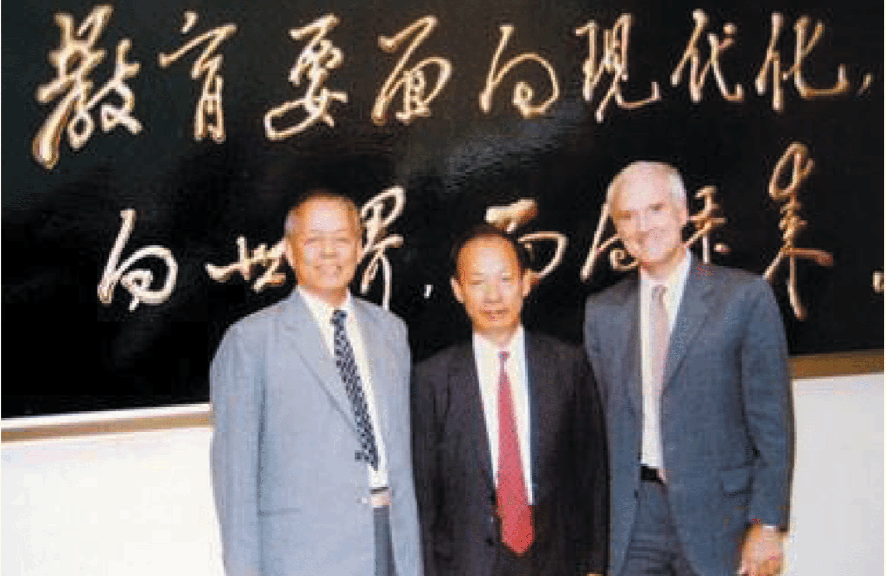 1989年8月23日,邹至庄教授与德怀特·帕金斯教授、中美经济学教育交流委员会主席黄达教授在中美双方委员会第三次联席会议上合影