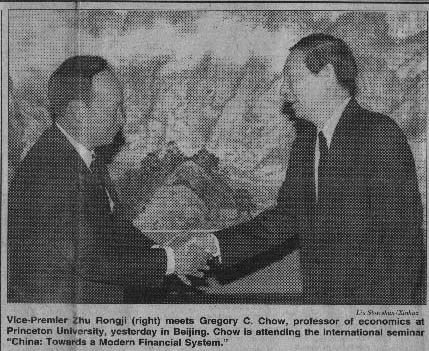 1996年,时任副总理朱镕基接见邹至庄教授