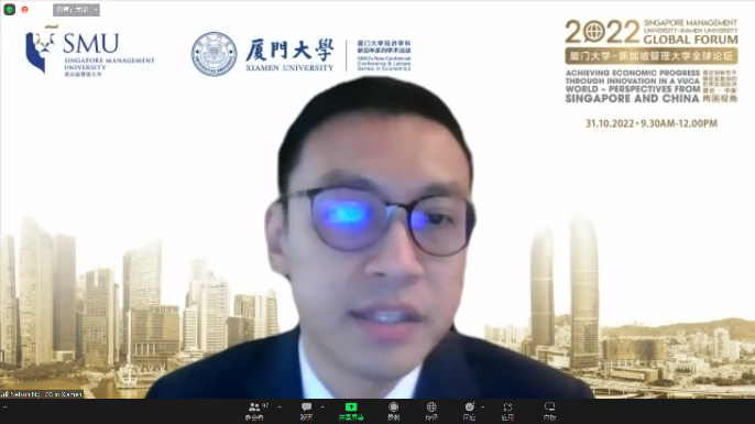 10月31日,“厦门大学-新加坡管理大学全球论坛”以网络会议的形式,在中国和新加坡两地连线举行。本次论坛的主题是“通过创新在不确定且复杂的世界实现经济增长——中新两国视角”。