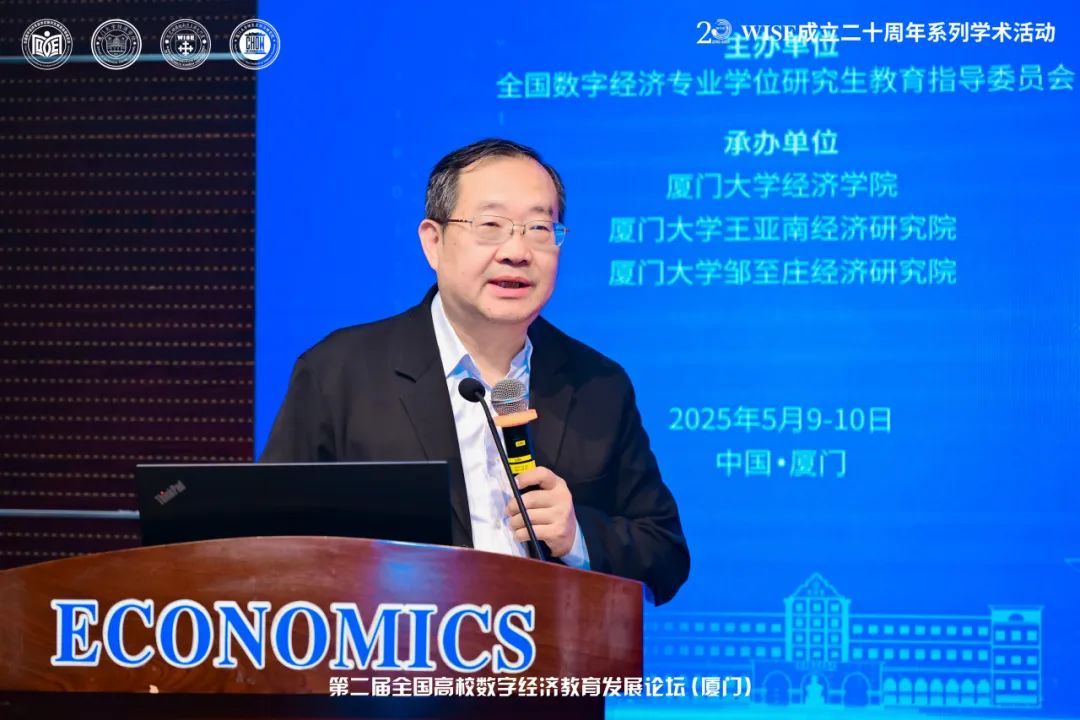5月10日,第二届全国高校数字经济教育发展论坛在厦门大学举办。论坛由全国数字经济专业学位研究生教育指导委员会(以下简称“全国数字经济教指委”)主办,由厦门大学经济学院、王亚南经济研究院、邹至庄经济研究院承办。论坛聚焦“教育强国目标下的数字经济人才培养:数智化转型与产教深度融合”主题,吸引来自全国近120所高校和研究机构的210余名嘉宾代表参会。该论坛为厦门大学王亚南经济研究院(WISE)建院二十周年系列学术活动之一。