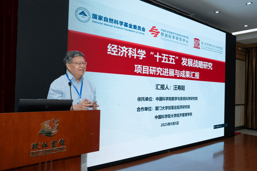 发展中国家科学院院士、中国科学院杰出研究员、中国科学院数学与系统科学研究院预测科学研究中心主任汪寿阳教授代表课题组作了题为“经济科学‘十五五’发展战略研究”的主旨报告。报告聚焦经济学科的发展趋势,回顾了经济科学‘十五五’发展战略研究项目的研究进展与成果、经济科学学科在国内的发展现状,提出了未来5年发展布局与优先领域以及保障措施和政策建议。汪寿阳教授指出了在当前的时代背景下经济科学需要肩负的任务与使命,同时对经济科学各学科的现状与发展趋势进行了分析,并提出了下一步的工作计划。