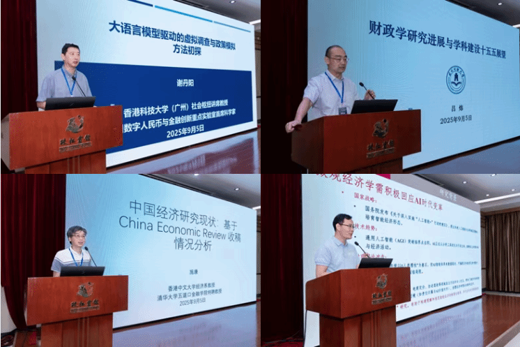 随后,香港科技大学(广州)谢丹阳教授、东北财经大学吕炜教授、香港中文大学施康教授、中国人民大学李三希教授分别带来了主题演讲,题目依次为“大语言模型驱动的虚拟调查与政策模拟方法初探”、“财政学研究进展与学科建设‘十五五’展望”、“中国研究现状:基于China Economic Review 收稿情况的分析”、“智能体与微观经济学研究前沿。”